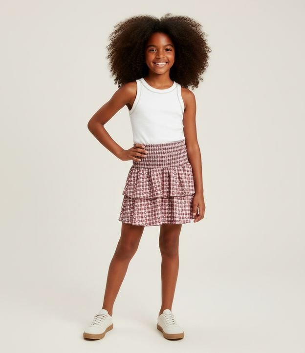 Saia Infantil Texturizada com Estampa Xadrez e Corações – Tam 7 a 14 Anos
