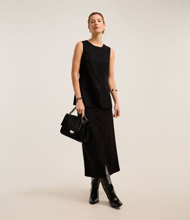 Saia Long Midi em Viscolinho com Botões Forrados Preto
