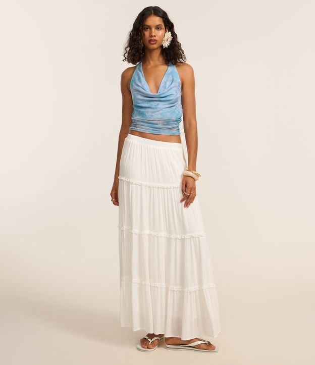 Saia Long Midi em Viscose com Babados e Textura Branco
