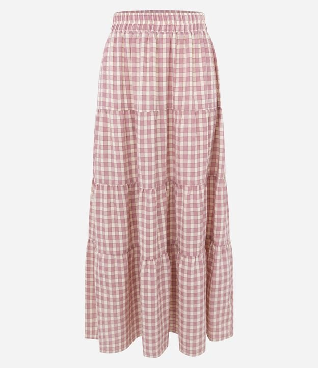 Saia Long Midi Xadrez com Texturização Rosa
