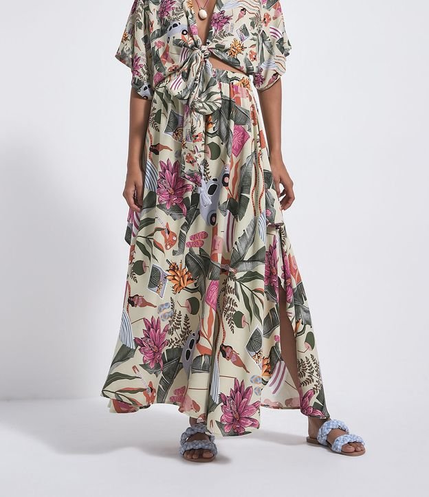Saia Longa Assimétrica com Cós Elástico Estampada
