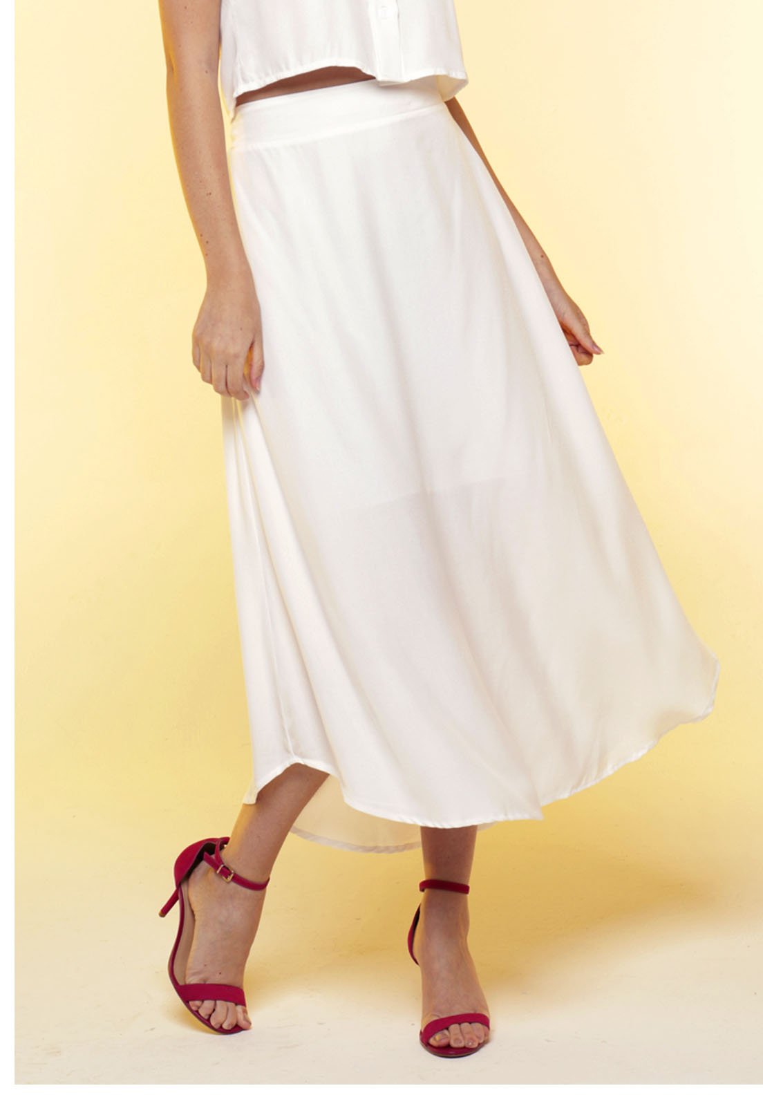 Saia Longa Branca Lisa em Viscose com Forro Sob