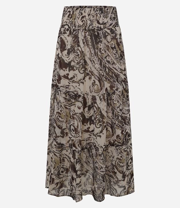 Saia Longa em Chiffon Paisley e Babado Bege/Marrom