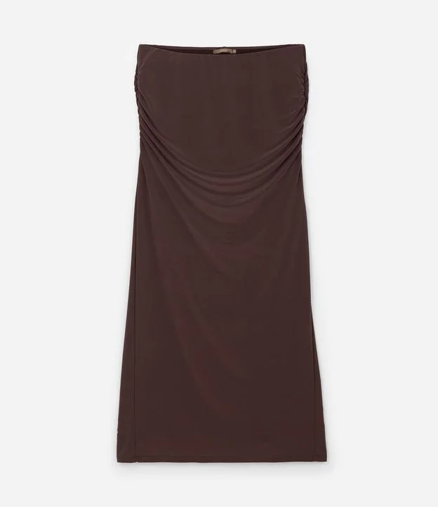 Saia Longa em Poliéster com Franzido no Quadril e Fenda Atrás Curve & Plus Size Marrom