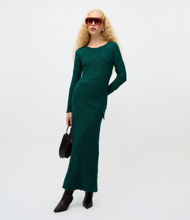 Saia Longa em Tricô Texturizado com Fenda Assimétrica Verde