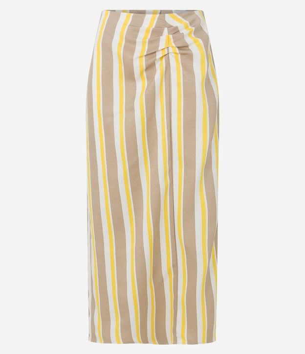 Saia Midi Acetinada com Pregas e Listras Coloridas Verticais
