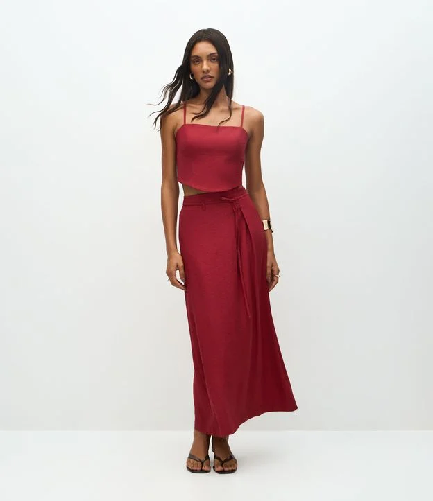 Saia Midi Alfaiatada com Amarração na Cintura Vermelho