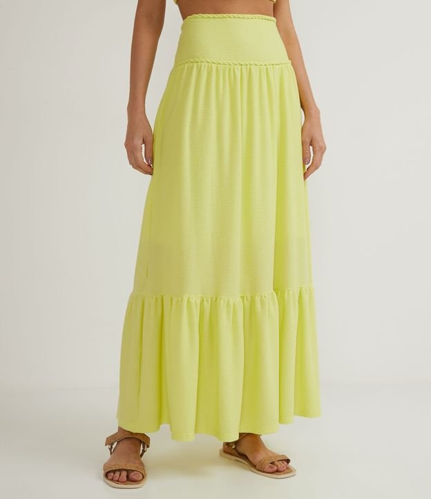 Saia Midi com Detalhes Trançados no Cós e Babado na Barra