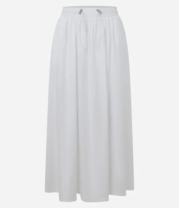 Saia midi feminina confeccionado em algodão certificado BCI, através de boas práticas ambientais. Possui cós elástico embutido e ajuste por cordão com ponteiras metálicas.