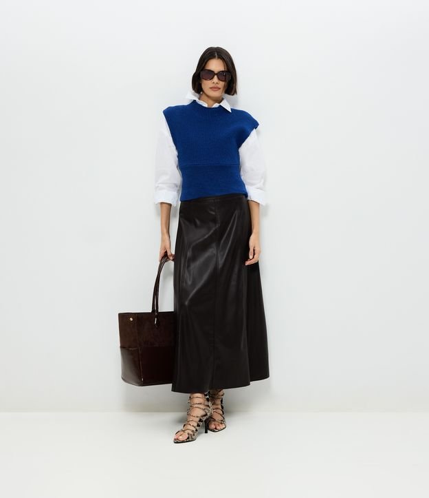 Saia Midi em PU com Recortes Frontais