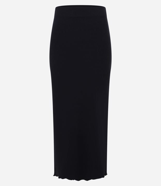Saia Midi em Ribana com Barra Picot e Fenda Preto