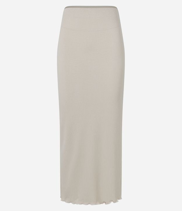Saia midi, em ribana, sem estampa com fenda lateral e barra picot.