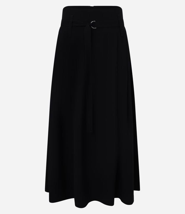Saia Midi Evasê em Alfaiataria com Detalhe de Cinto no Cós