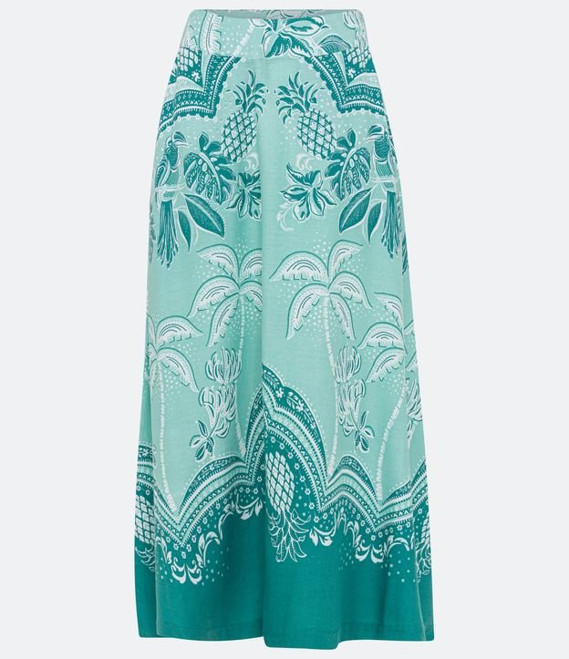 Saia New Midi em Linho com Estampa com Bolsos e Estampa Tropical