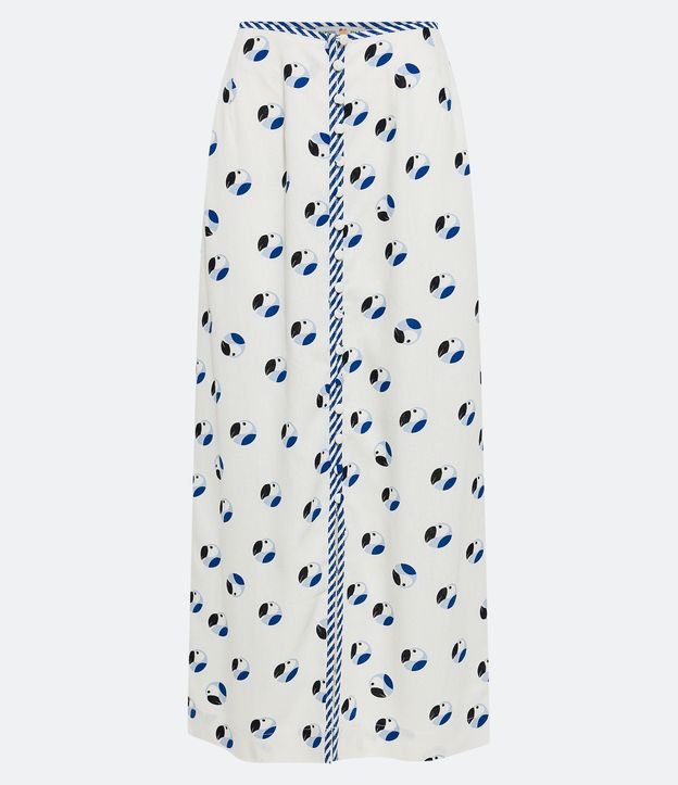 Saia New Midi em Linho Reta com Botões e Estampa de Araras