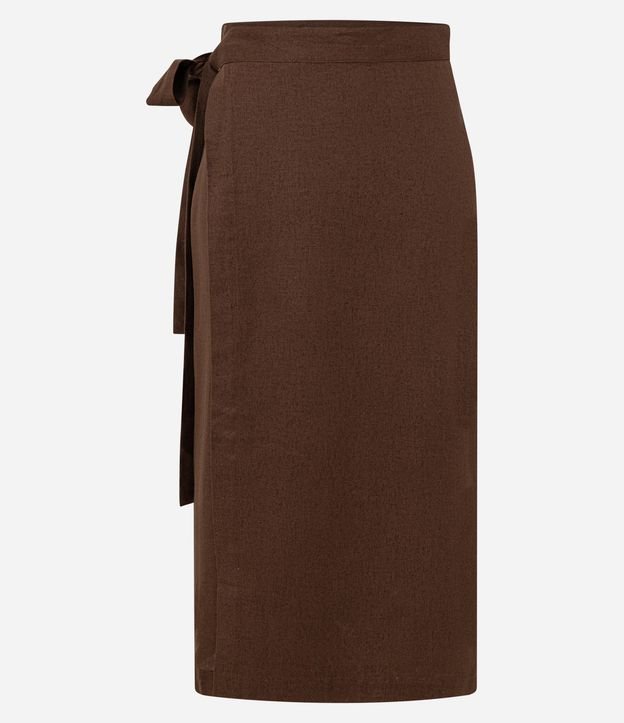 Saia New Midi em Viscolinho com Transpasse Frontal e Amarração Marrom