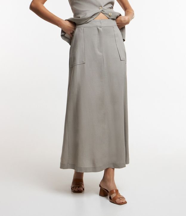 Saia Reta Midi em Viscolinho com Bolsos Grandes