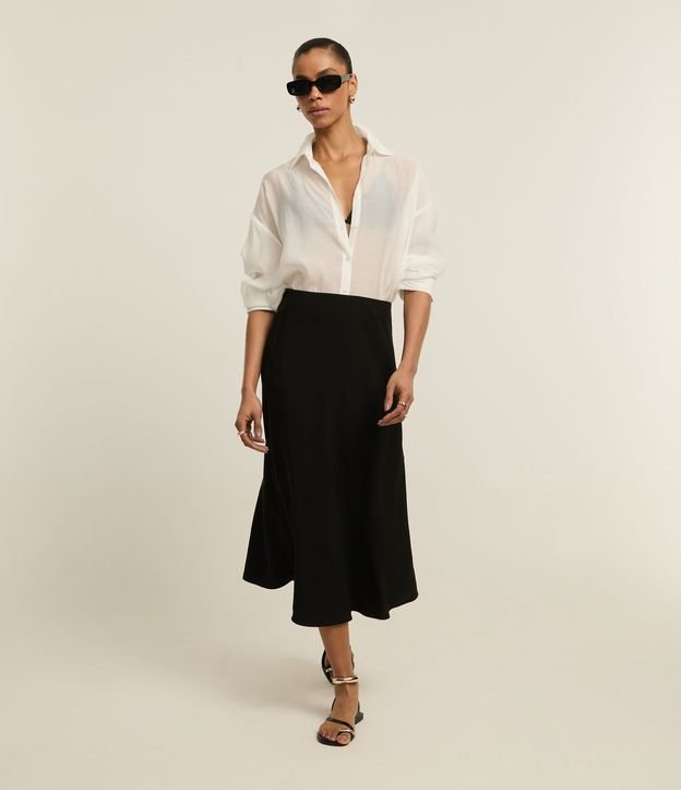 Saia Slip Longa em Cupro com cós Alfaiatado Preto