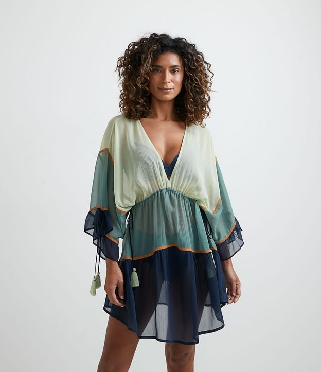 Saída de Praia Bata em Poliéster com Amarração e Blocos de Cor