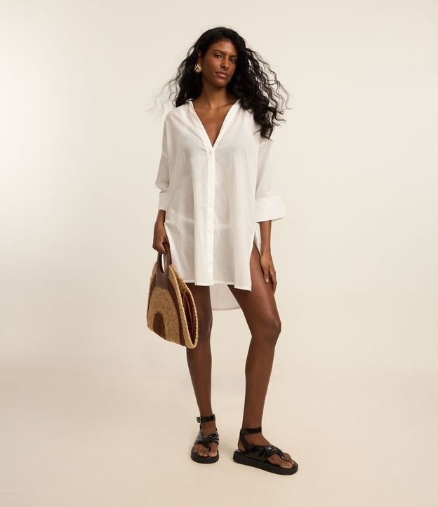 Saída de Praia Camisa em Voal com Mangas 3/4 Off White