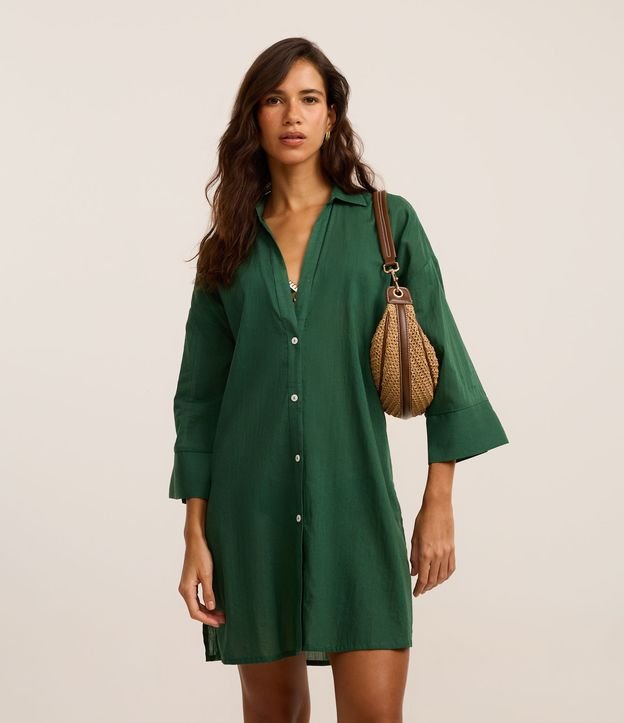 Saída de Praia Camisa em Voal com Mangas 3/4 Verde