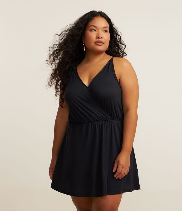 Saída de Praia Microfibra com Transpassado Curve & Plus Size Preto