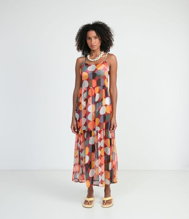 Saída de Praia Vestido Longo com Estampa Poá e Babado na Barra