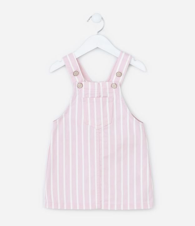 Salopete Infantil em Jeans com Estampa de Listra - Tam 1 a 6 Anos Rosa