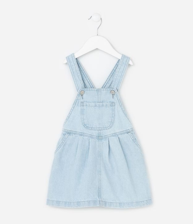 • Salopete Infantil Jeans com Bolsinho Frontal e Pregas – Tam 1 a 6 Anos Azul Claro 5