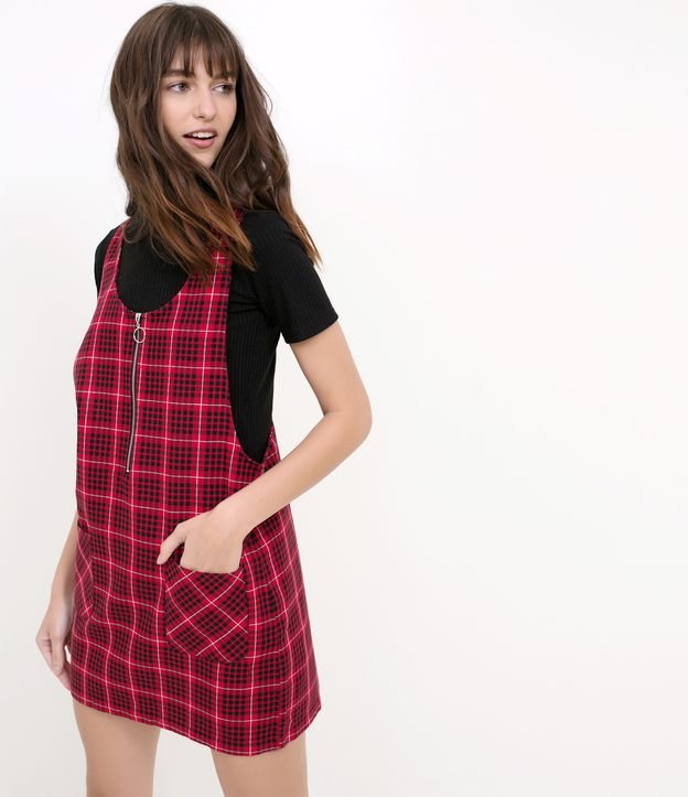 Salopete Xadrez com Zíper e Bolsos Frontais