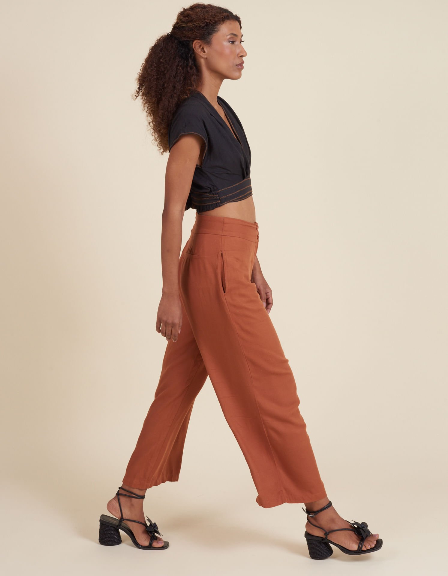 Essa sandália tem cabedal em tira rolotê de material soft, alternativo ao couro, com flor em couro é super delicada e romântica. A palmilha de recouro com espuma no calcanhar, o solado e o taco naturais garantem um visual impecável.