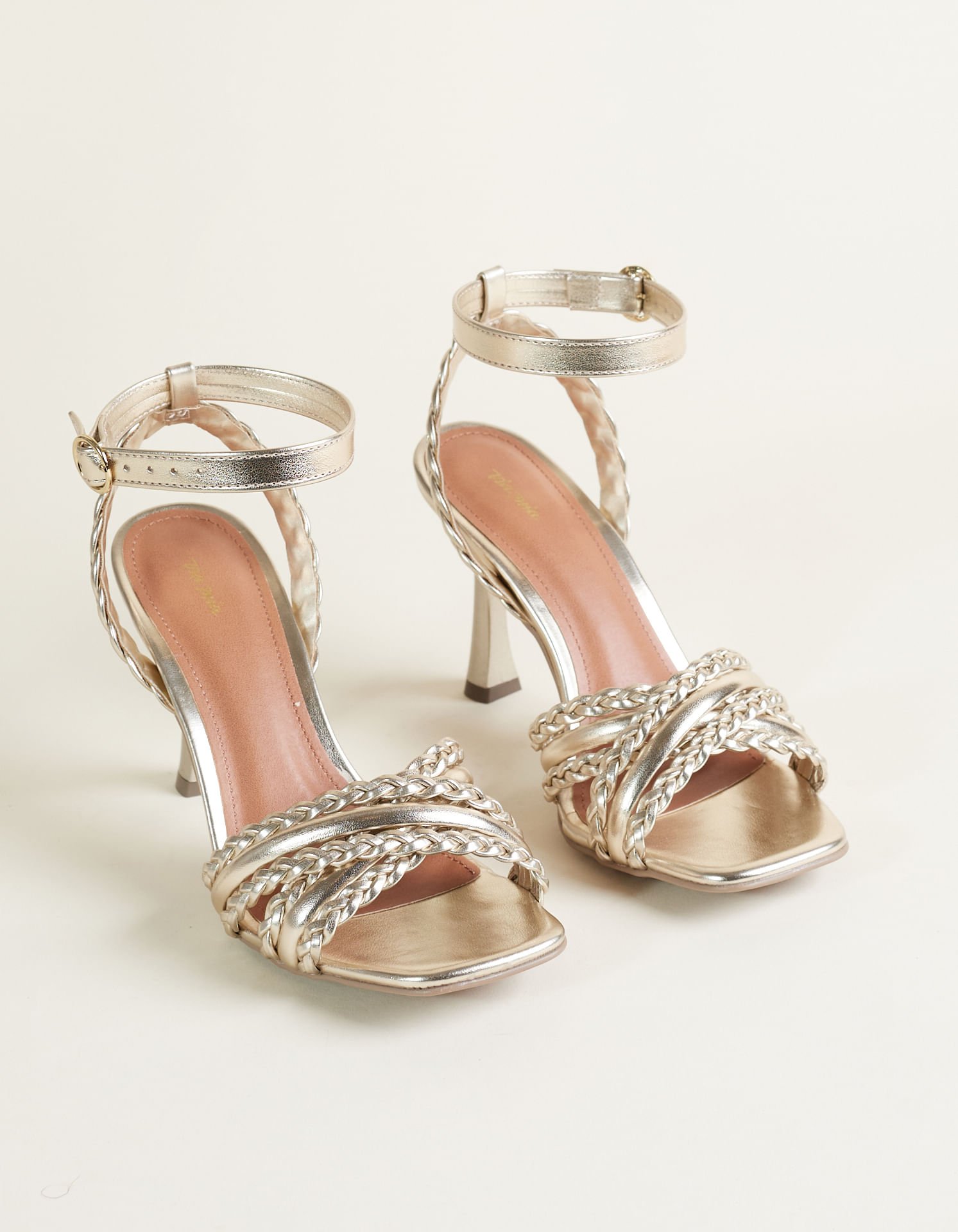Sandália Alta Soft Tiras Trançadas Metalizada - Ouro Light