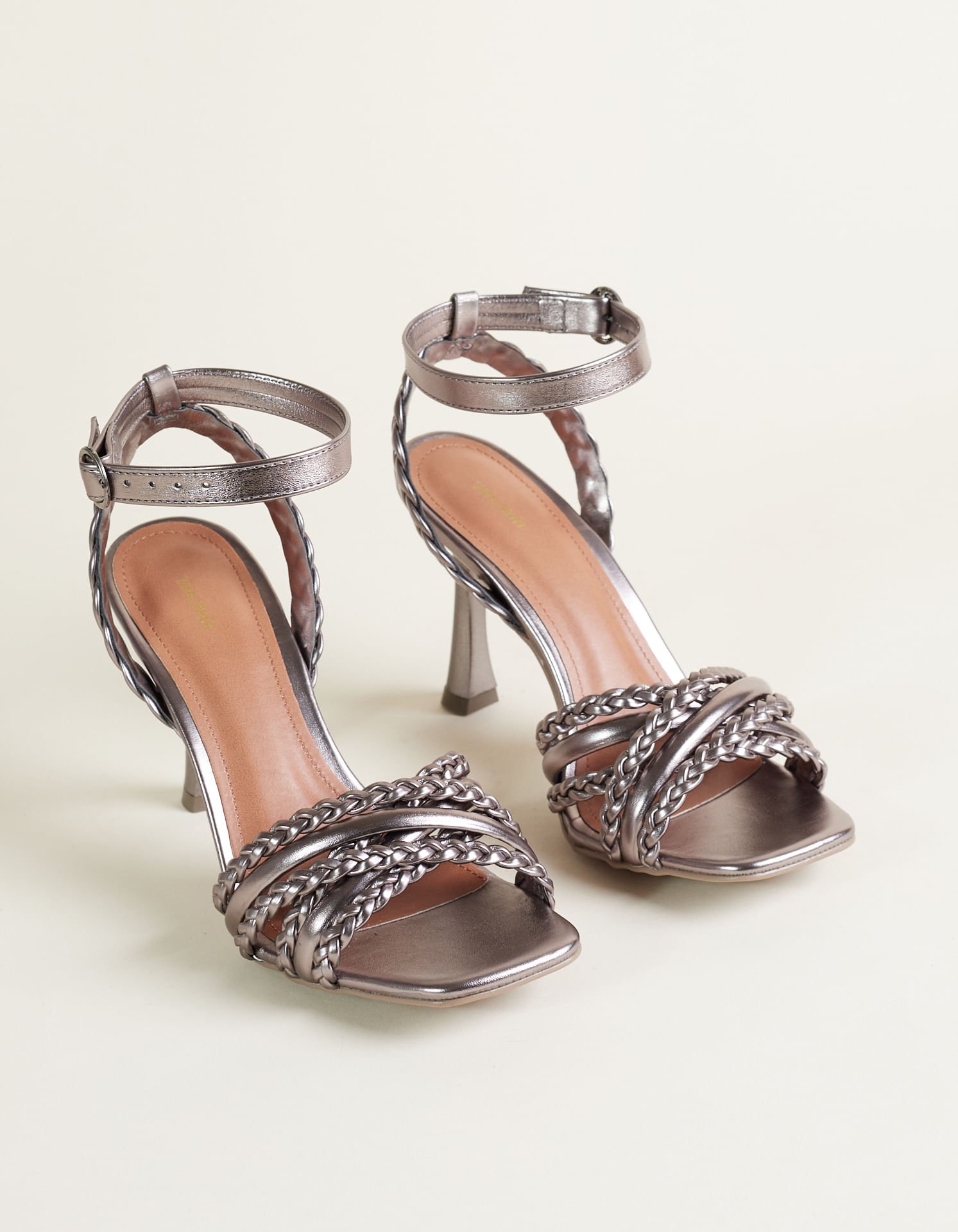 Sandália Alta Soft Tiras Trançadas Metalizada - Prata Velho