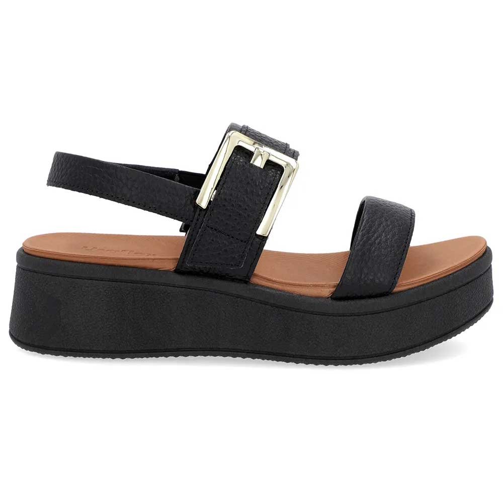 Sandália Anabela Feminina Couro Fivela Preto Usaflex AM23003 Preto
