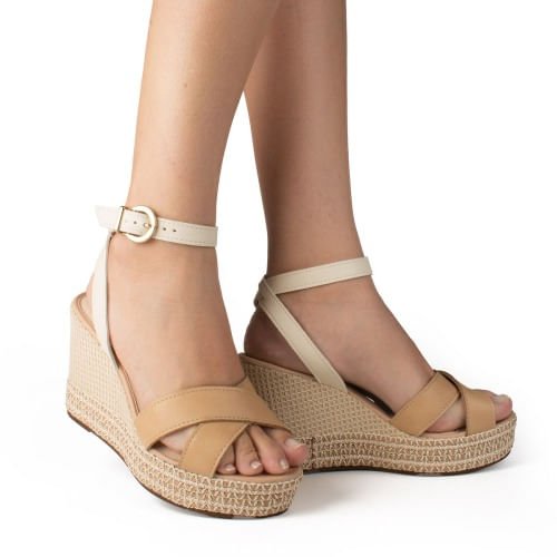 • Sandália Anabela Salto Trama Dakota Bege 1