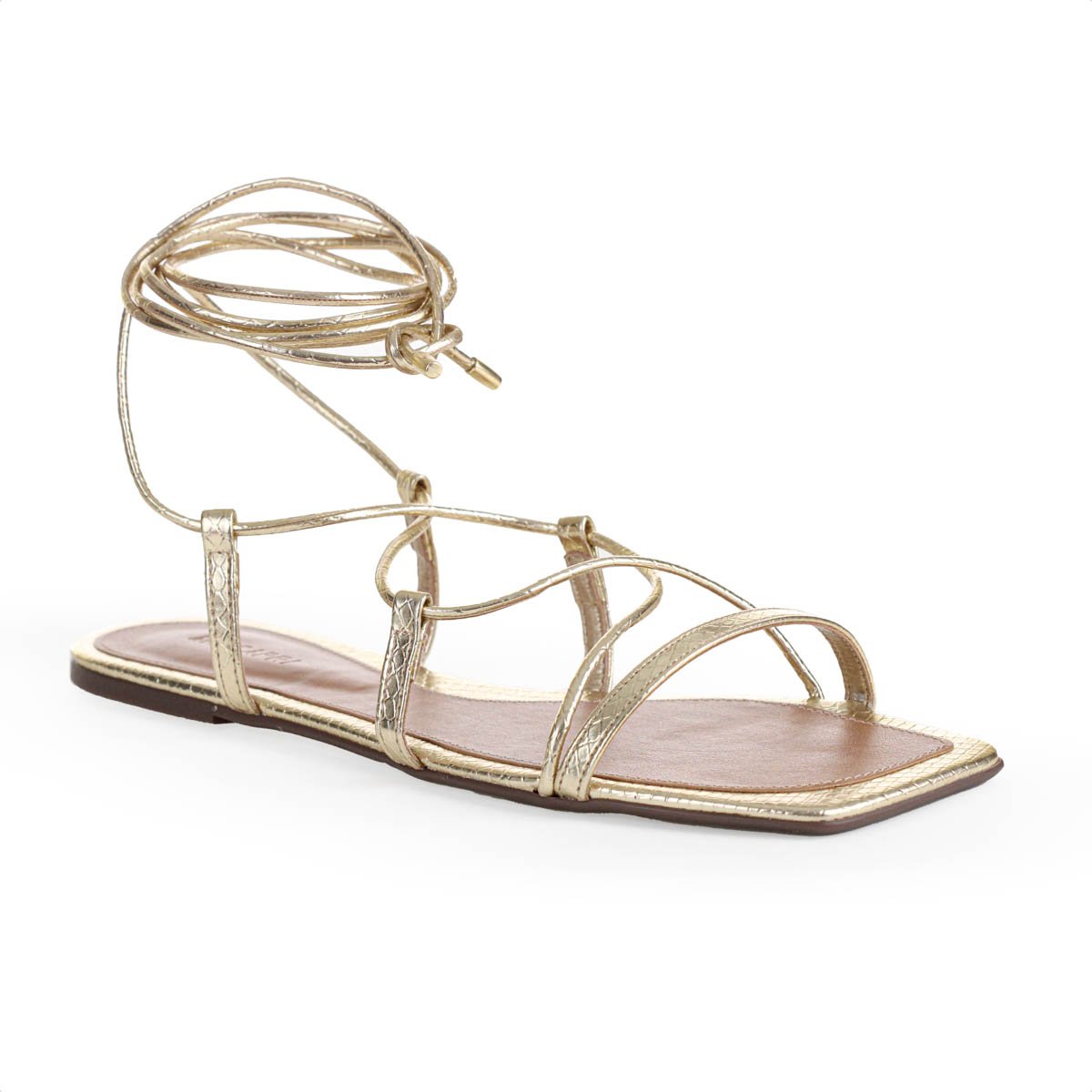 Sandalia Anacapri Amarracao Tiras Finas Snake Dourado - Feminino: Elegancia e versatilidade em um design unico.