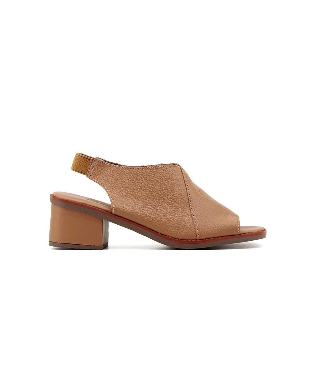 Sandália Anne Moraes Salto Médio Couro Caramelo