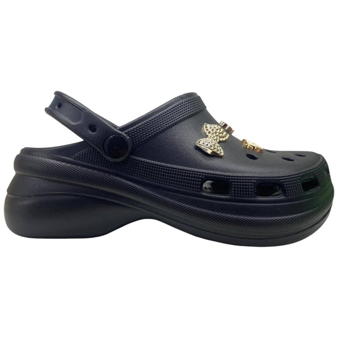 Sandália Babuche Feminina Plataforma Com Apliques Removíveis Preto