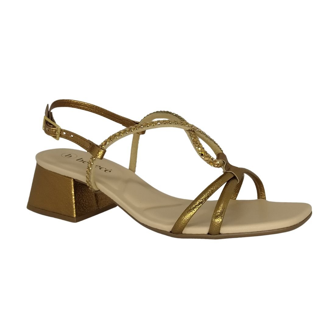 • Sandália Bebecê Bronze Salto Médio Dourado 1