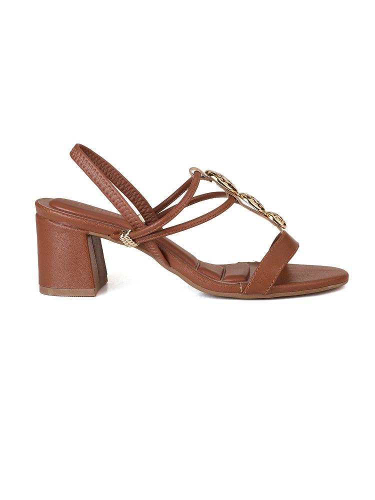 Sandália Bebecê de cabedal leve e rico em detalhes, com enfeite texturizado na salomé para sofisticação. Elástico traseiro facilita o calce rápido e palmilha espumada oferece conforto superior. Salto médio bloco atemporal garante versatilidade e solado antiderrapante para mobilidade.