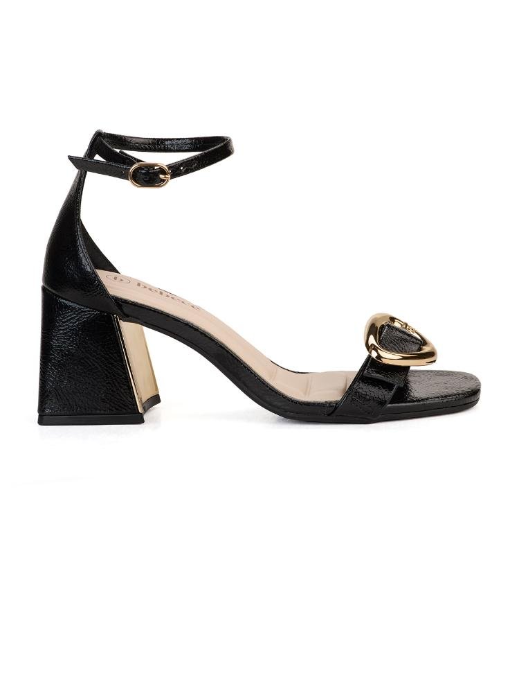 Sandália Bebecê com Salto Bloco e Fivela Dourada Preto
