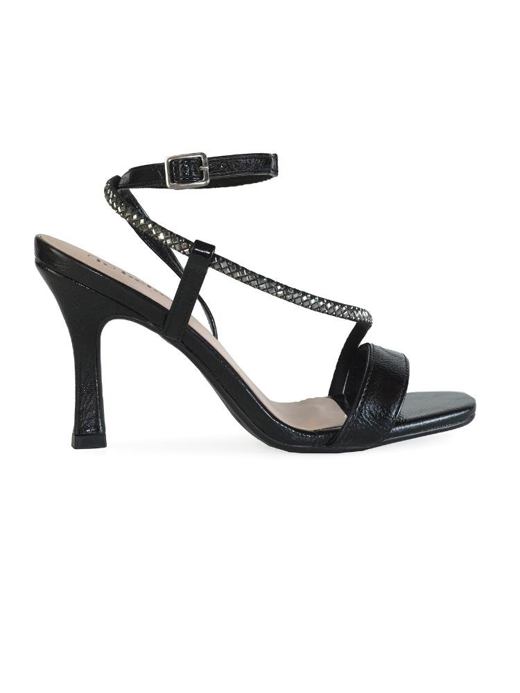 Sandália Bebecê Monocromática Salto Alto Tiras Com Brilho Preto