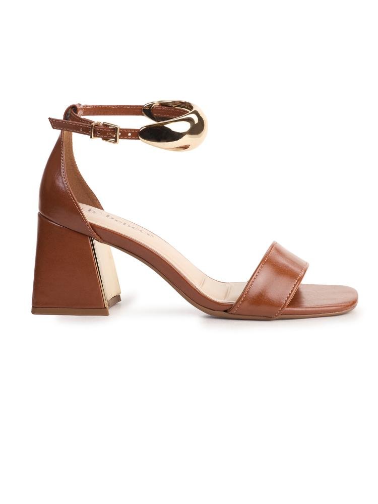 Sandália Bebecê Salto Bloco Tira Frontal e Fechamento Esfera Marrom