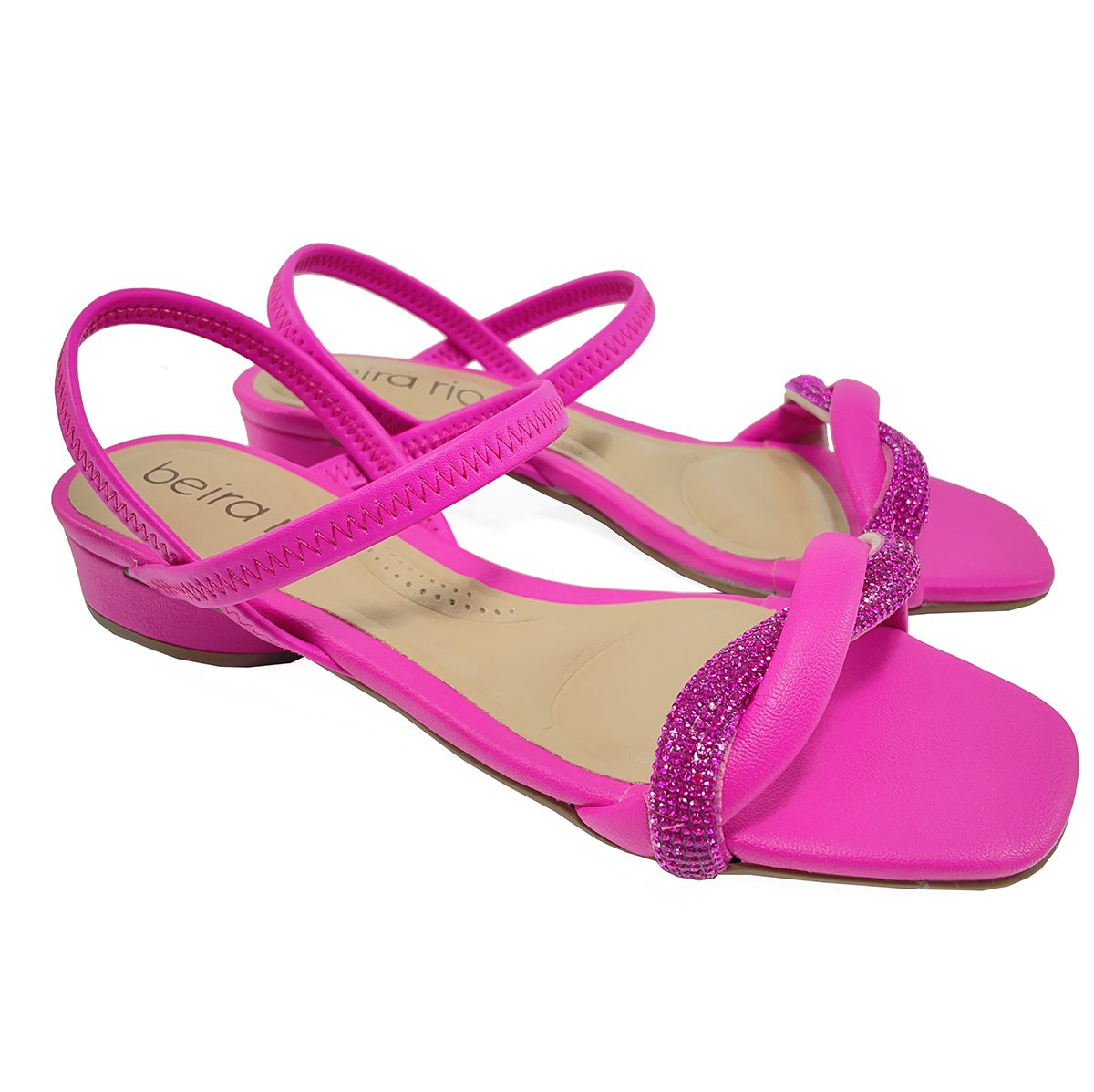 Sandália Beira Rio Strass Calce Fácil Salto Baixo - Rosa Rosa