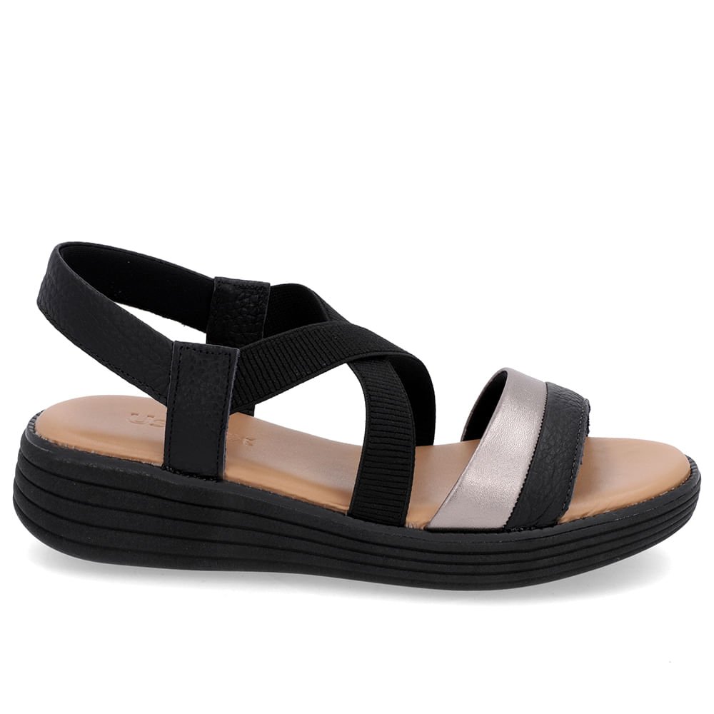 Sandália cabedal em couro relax catalano na cor preto. O modelo possui tecnologia Calce Fácil, com modelagem inteligente em adaptar o calçado a ergonomia dos pés.