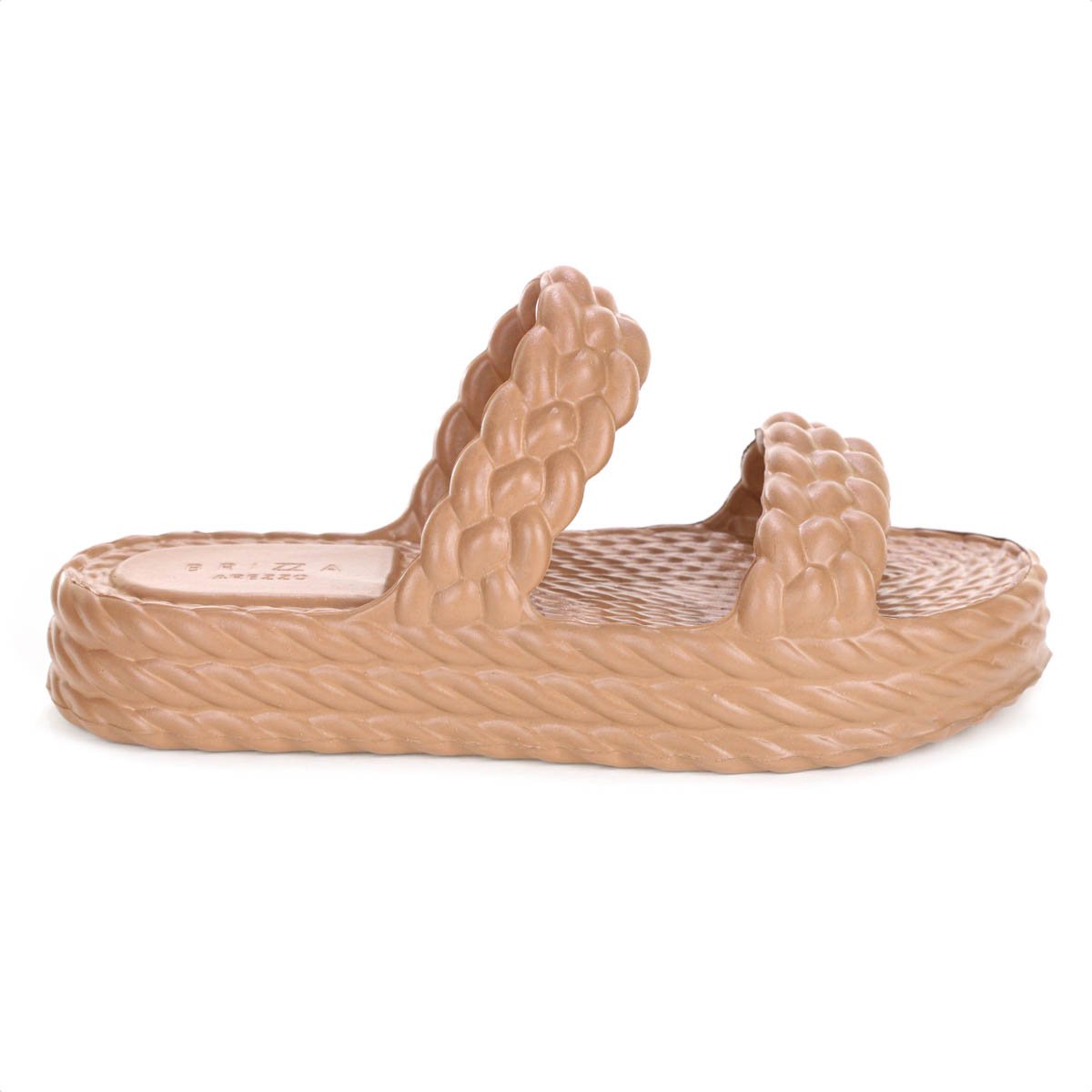 Sandalia Brizza Arezzo EVA Salto Baixo Bege - Feminino. Leveza e Sofisticacao nos seus pes.