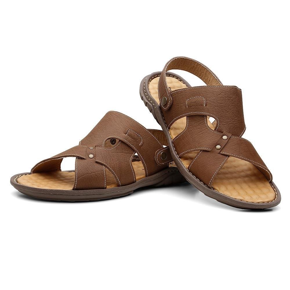 Sandália Casual Masculina Couro Despojada Macia Marrom