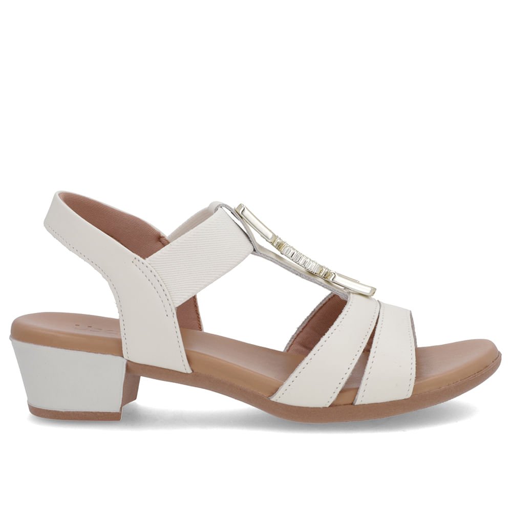 Sandália cabedal em couro napa valise na cor marfim. O modelo possui tecnologia Calce Fácil, com modelagem inteligente em adaptar o calçado a ergonomia dos pés.