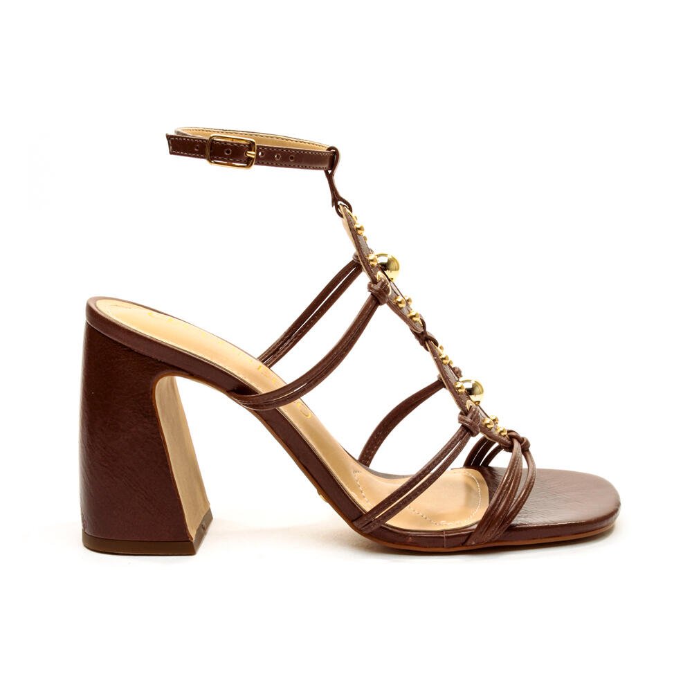 SandÁlia Couro Marrom Salto Bloco Alto Cecconello 2566001-2