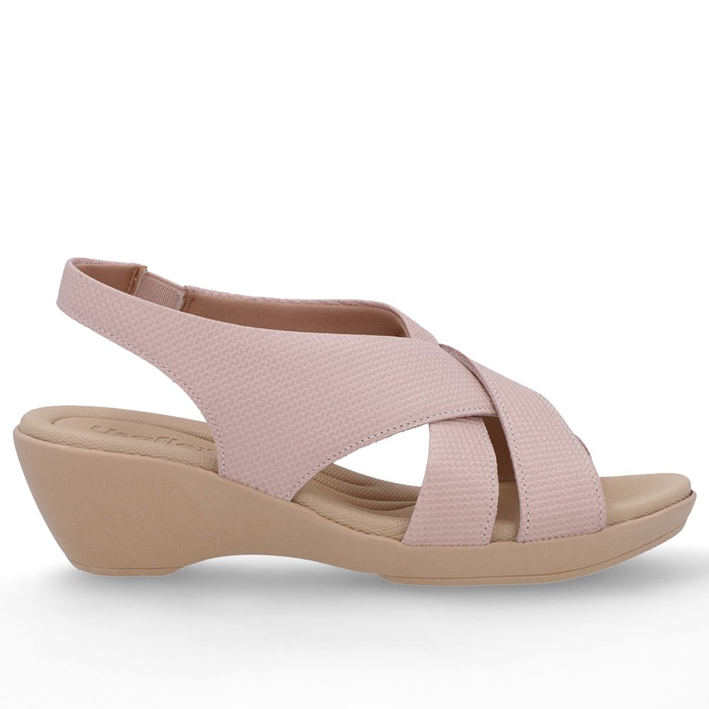 Sandália salto anabela em couro mini tresse na cor rosa suave. O modelo possui tecnologia Calce Fácil, com modelagem inteligente em adaptar o calçado a ergonomia dos pés.